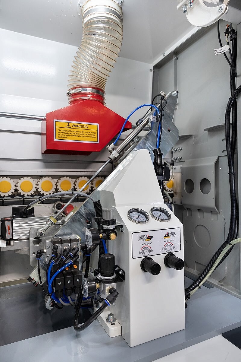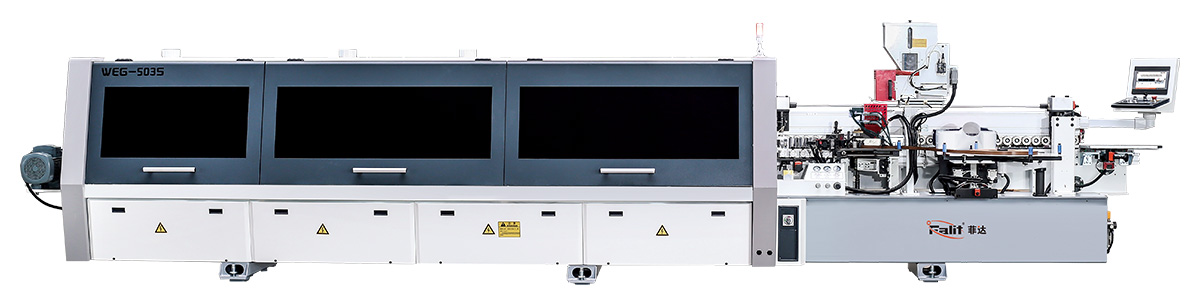Кромкооблицовочный станок WEG-503S предназначен для облицовывания прямолинейных кромок плитных материалов рулонными кромками АБС, ПВХ и полосовым кромочным материалом толщиной до 3 мм.