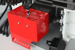 Измеритель толщины детали остановит конвейер при подаче заготовки большей толщины. Защита механизмов подачи и прижимной балки.