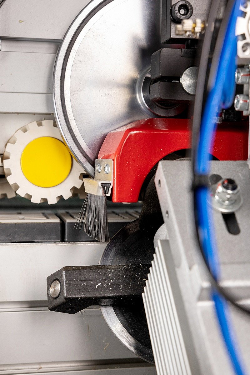 Узел полировки с кругами из двухслойной ткани необходим для финишной обработки кромки. Придает блеск обработанной поверхности, очищает от загрязнений.
