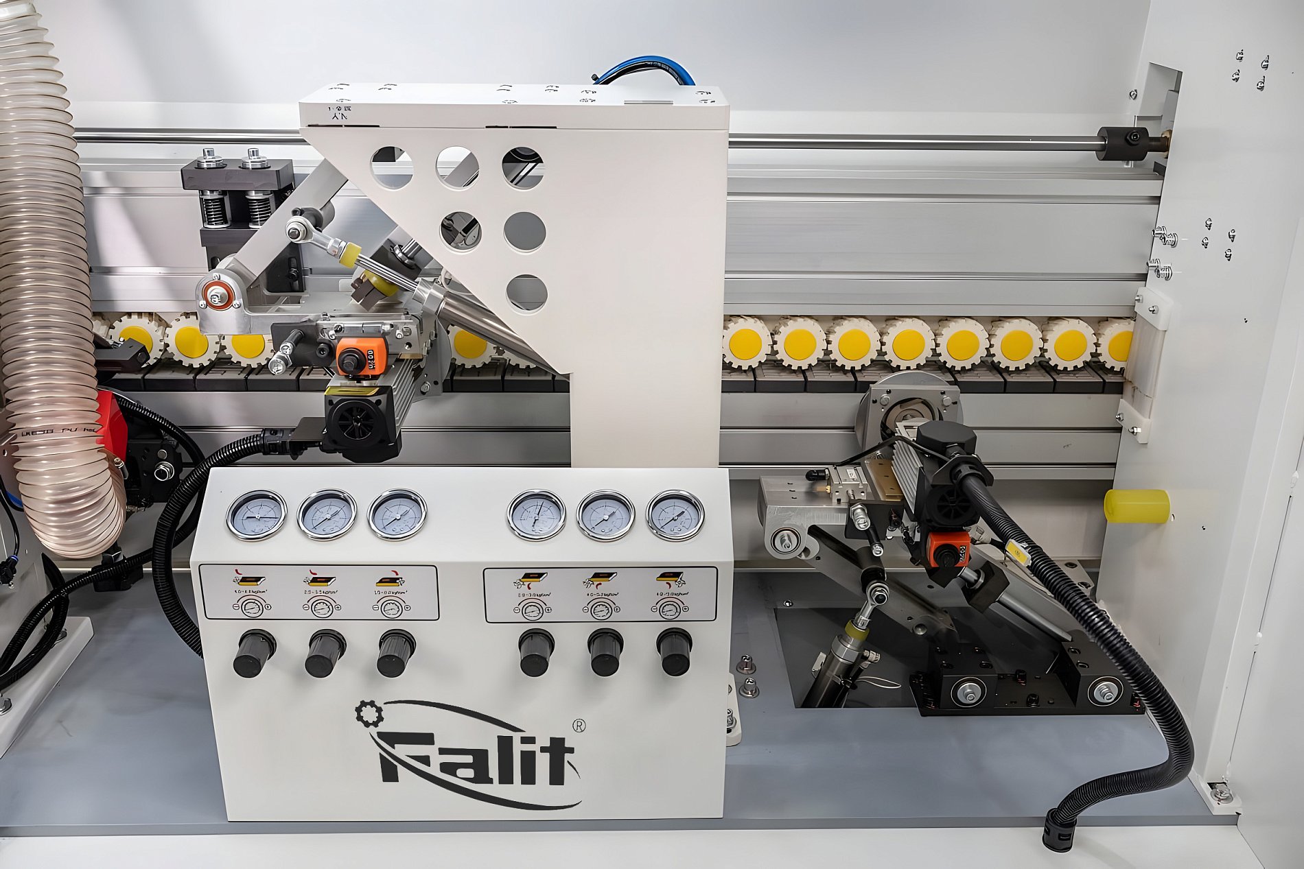 Предназначен для торцевания переднего и заднего свесов кромочного материала.