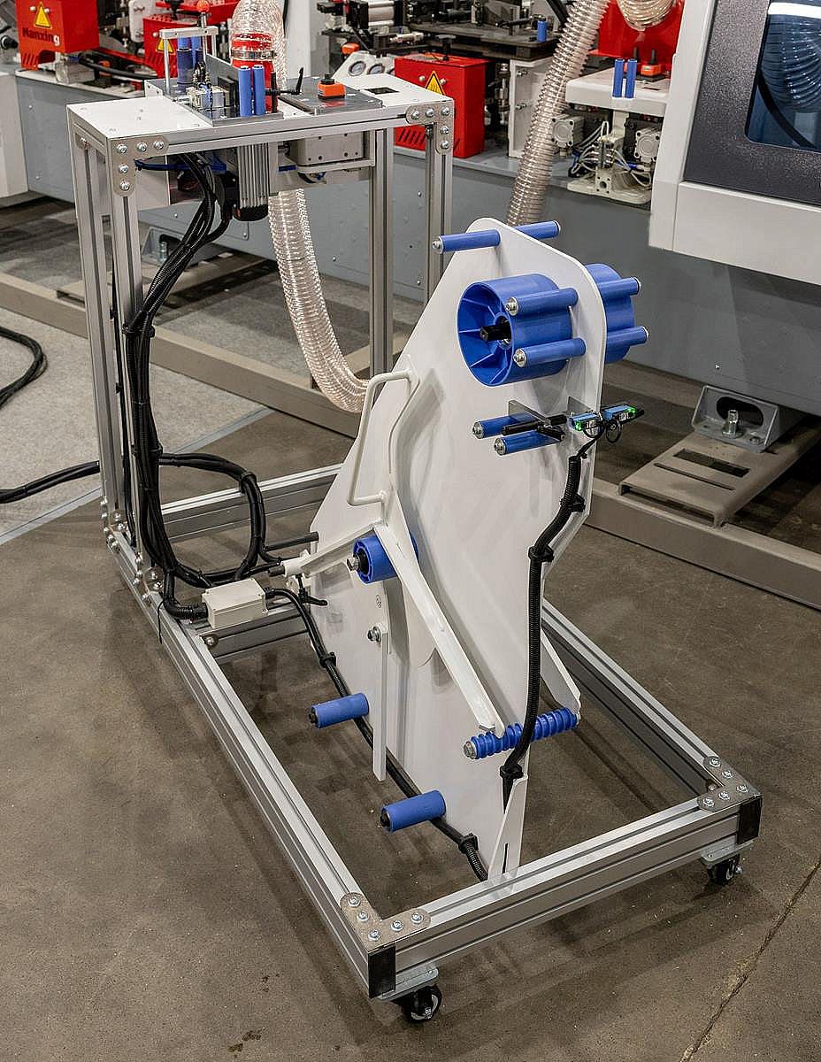 Парные прижимные ролики служат для надежной фиксации детали, предотвращая перекосы во время обработки.